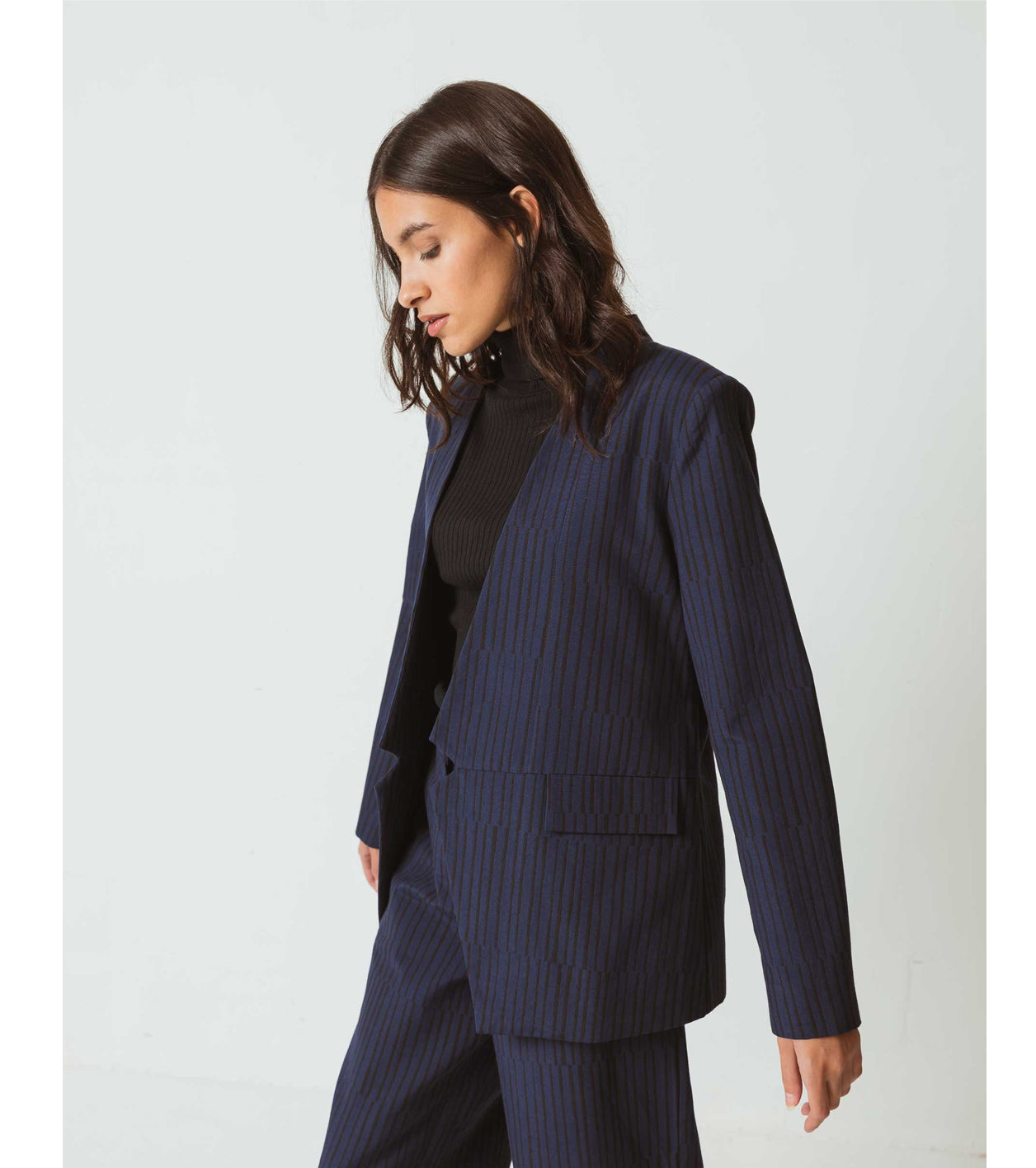 Blazer jacket made of a soft and flowy Lenzing™ Ecovero™ jacquard woven blend, with flap pockets. Navy blue. LENZING™ ECOVERO™ is the responsible viscose. Not only do we save 50% on emissions and water, but it’s also made of sustainable wood and pulp. In two words: responsible production. We use 100% FSC Certified Viscose, meaning natural wood fibers sourced from sustainably managed plantations, and transformed into cellulose fibers and again into cute clothes.