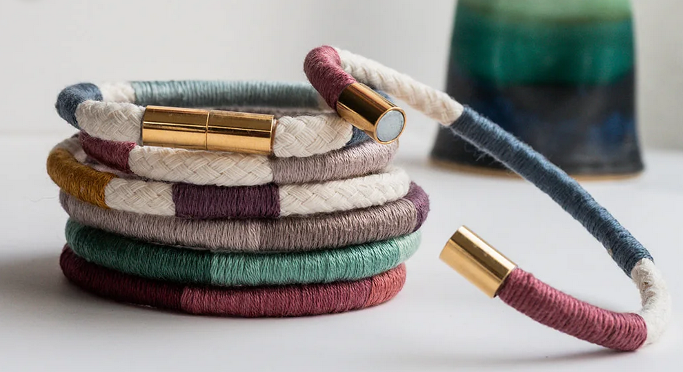 Brass naturally tarnishes when exposed to air, water and body oils. Over time the metal part of your piece may darken in color as may the strings. This process will happen faster the more the piece is exposed to the elements.
